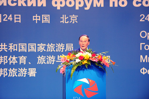 (中国国务院副总理、中俄旅游年组委会中方主席王岐山出席论坛开幕式并发表演讲)