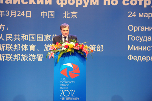 (俄罗斯联邦副总理、中俄旅游年组委会俄方主席苏尔科夫出席论坛开幕式并发表演讲)