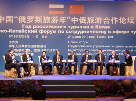 3月24日,由中华人民共和国国家旅游局、俄罗斯联邦体育、旅游与青年政策部、俄罗斯联邦旅游署共同主办,中国旅游研究院和俄罗斯"无国界世界"旅游协会共同协办的中国"俄罗斯旅游年"中俄旅游合作论坛在北京中国大饭店隆重举行。中国国务院副总理、中俄旅游年组委会中方主席王岐山与俄罗斯副总理、中俄旅游年组委会俄方主席苏尔科夫共同出席论坛开幕式并致辞。论坛以"把旅游合作培育成中俄务实合作新亮点"为主题,来自中俄两国政府、商界、学界等近千人出席了本次论坛。