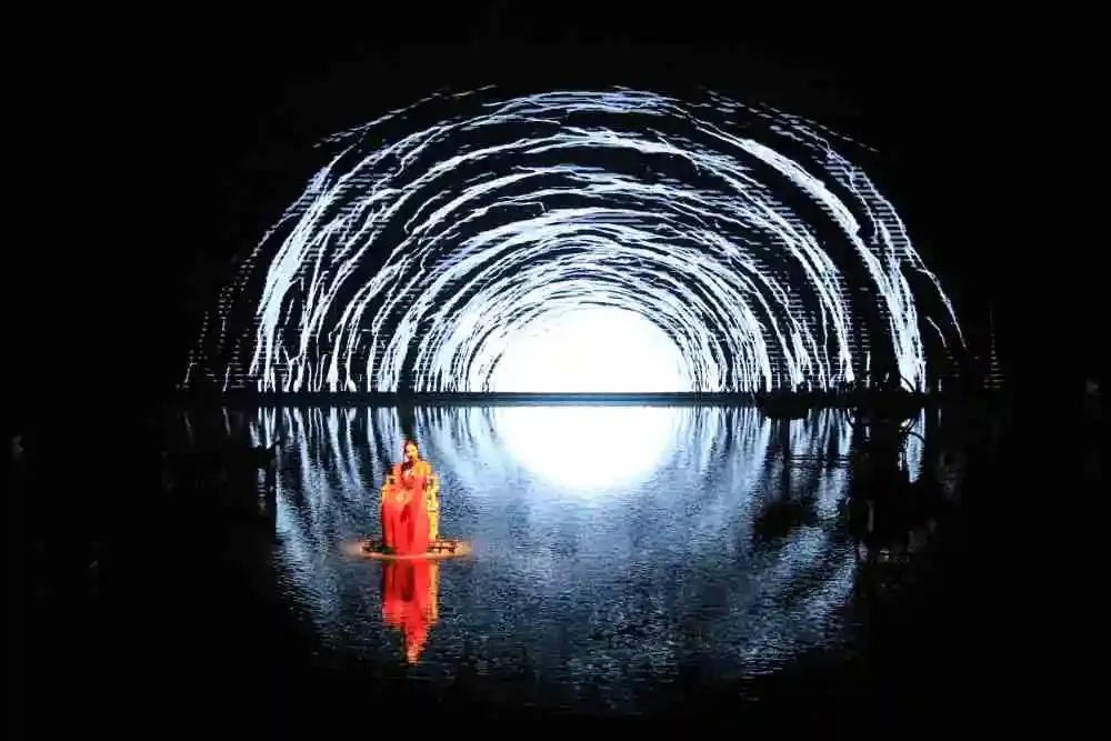 36 tall carved wooden doors opened slightly, and the actors danced gracefully; the light and shadow on the stage changed, and layers of water curtains fell from time to time... "It's so shocking!" The audience exclaimed in unison.