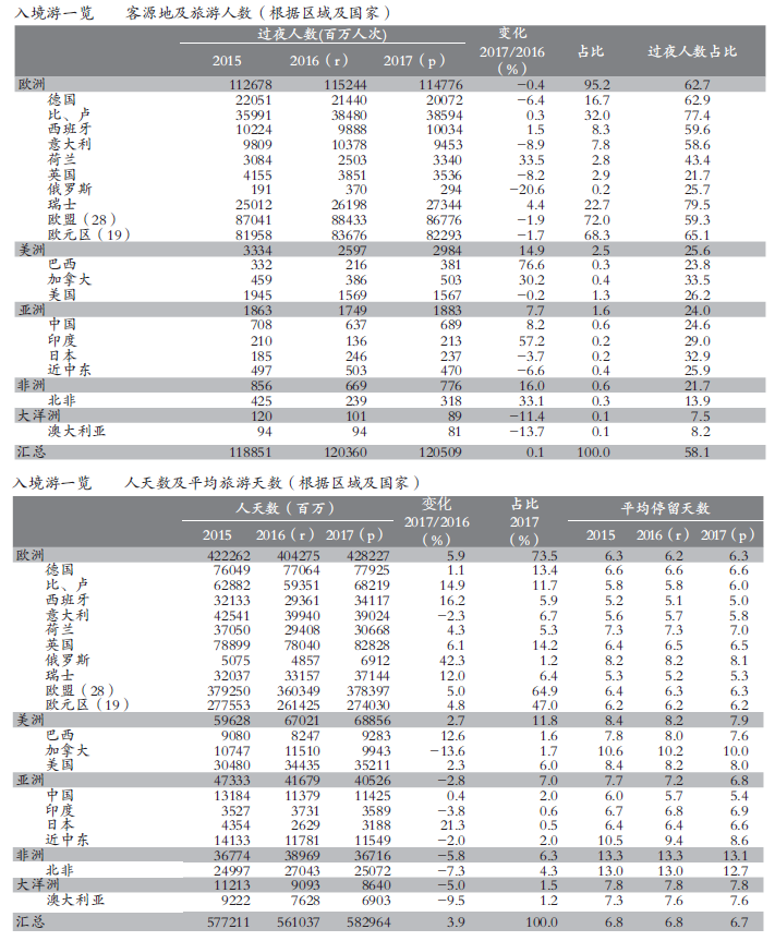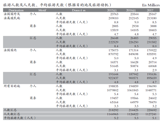 Source: DGE. 2018 Tourism Annual Handbook https://www.entreprises.gouv.E. Inbound tourism includes non-monetary indicators such as the number of inbound day tourists and overnight tourists, source of tourists, number of overnight stays, length of stay, and travel motivation. Inbound tourism data comes from the Foreign Visitors Survey (EVE) jointly completed by DGE and the Bank of France. The sampling survey is conducted when tourists leave France, and 60,000 samples are drawn every quarter.