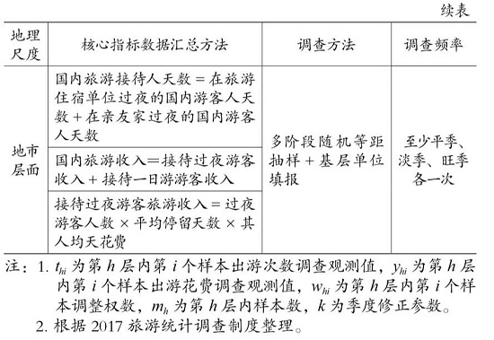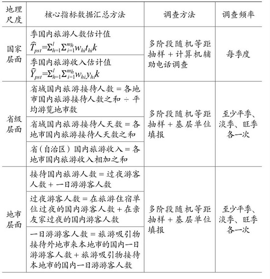 Table 2 Data summary and survey methods of core statistical indicators of domestic tourism at different geographical scales in my country