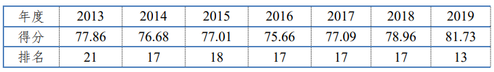 Figure 2: Satisfaction of Chinese tourists to Malaysia from 2013 to 2019
