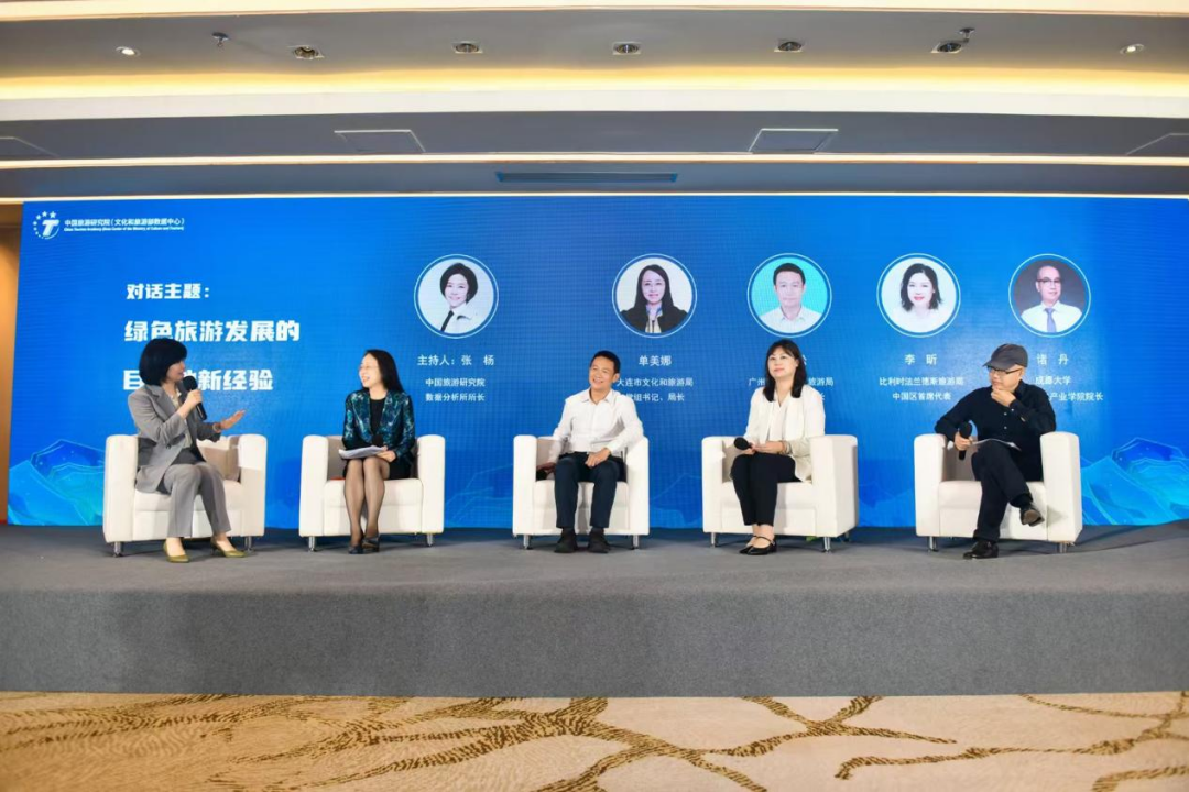 “绿色旅游发展的目的地新经验”专题对话环节,张杨所长与大连市文化和旅游局党组书记、局长单美娜,广州市文化广电旅游局党组成员、副局长吴青松,比利时法兰德斯旅游局中国区首席代表李昕,成都大学旅游与文化产业学院院长诸丹进行了专题交流,对话嘉宾从对绿色旅游的内涵认知、目的地建设顶层设计、产品开发、项目引进、供给激励、公众引导、未来趋势等各个方面,分享了各自城市的做法与亮点。