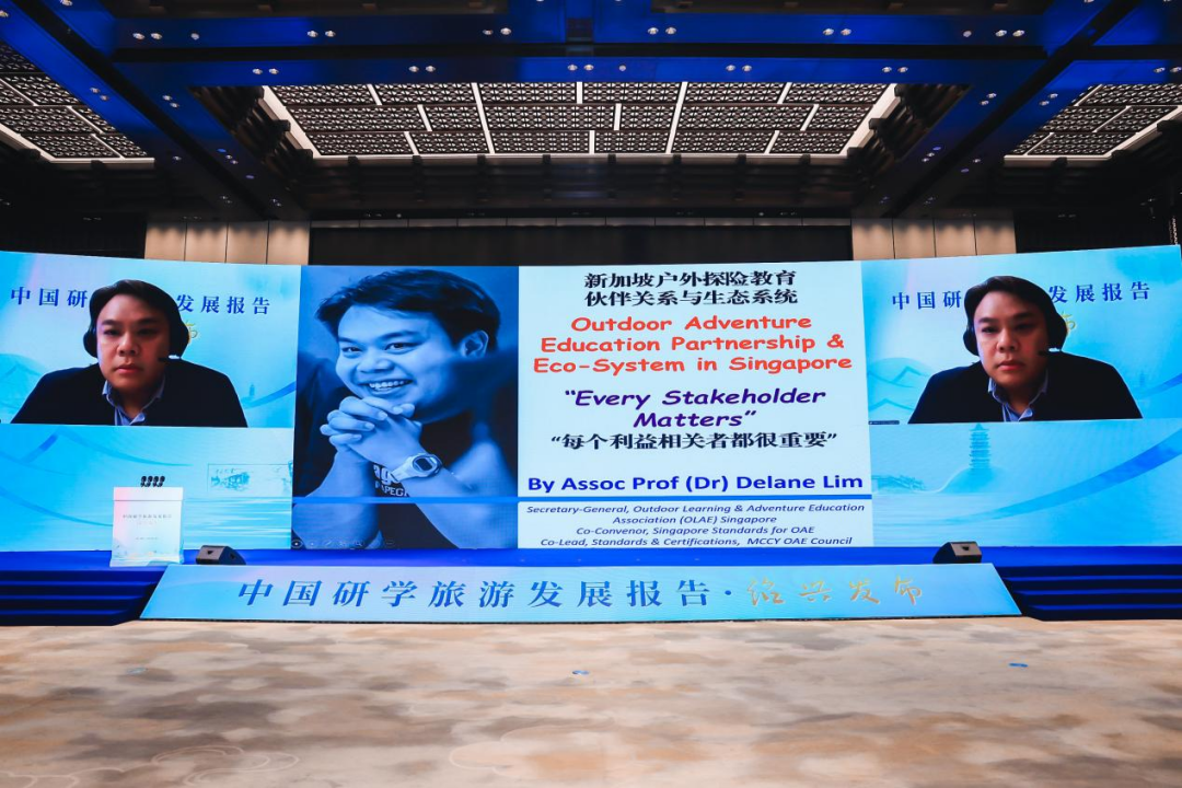 随后,新加坡户外学习与探险教育协会秘书长、新加坡文化社区与青年部部长顾问Delane Lim以在线演讲的方式做了题为《新加坡户外探险教育伙伴关系与生态系统》的主题演讲,介绍了新加坡研学旅游的实践和经验。