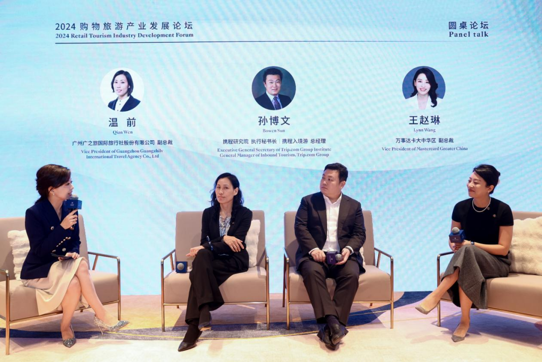 广州广之旅国际旅行社股份有限公司副总裁温前、携程研究院执行秘书长兼入境游总经理孙博文,万事达卡大中华区副总裁王赵琳围绕“打造高质量中国购物旅游目的地”主题进行了深入探讨和交流。