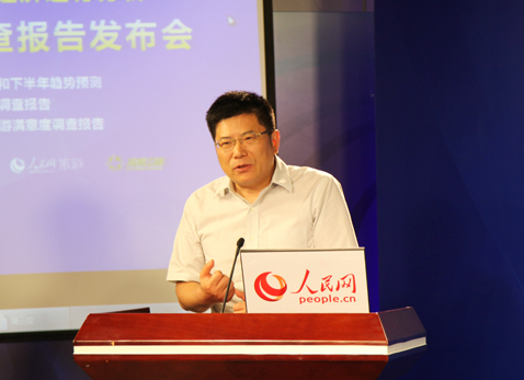 2014年7月9日由中国旅游研究院主办,人民网旅游频道、旅游卫视协办的2014年上半年旅游经济运行分析暨游客满意度调查报告发布会在人民网演播室举行。中国旅游研究院院长戴斌教授、北京市旅游委员会政策法规处调研员姜岩、中国国际旅行社总社有限公司总裁助理张陵捷、百度搜索引擎营销部高级营销总监周鹏、中国旅游研究院产业所所长李仲广副研究员、国家旅游经济实验室负责人唐晓云副研究员等参加了发布会。来自人民日报、新华社、中央电视台、中国国际广播电台、中国日报、经济日报、中国旅游报、中国网、央视网、中国旅游网、搜狐网、凤凰网、蓝海电视、旅行社杂志等媒体机构的代表也参加了发布会。