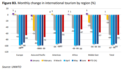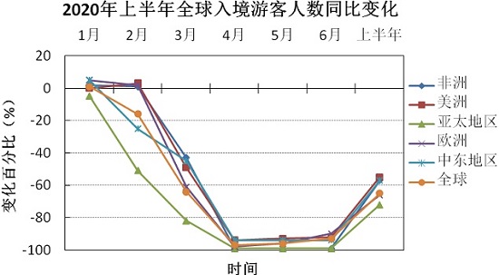 图3 新冠疫情对全球各地区旅游业的影响(数据来源:UNWTO)