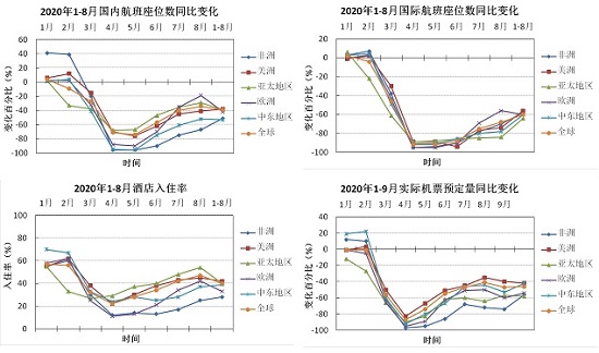 突如其来的新冠疫情对中国和世界各国各地区旅游旅行业的影响是空前的,直接导致2020年国际旅游业断崖式下降。第一季度,全球96%的旅游目的地实行了出行限制措施,90%完全或有针对性的关闭边境。春节期间,中国政府文化和旅游部门按照“把人民的生命安全和身体健康放在第一位”的指示精神,及时将旅游市场政策从“繁荣市场、保障供给”,调整为“停组团、关景区、防控疫情”。受此影响,全球范围内的旅游旅行人次应声下跌,国际游客人数在4月份降至最低。随着一些国家和地的疫情防控效果的显现,国内旅游市场从5月开始逐渐恢复。中国从3月14日就放开了省内旅游业务,5月1-5日的劳动节假日旅游接待人次按可比口径恢复了53.5%。两个月以后,中国进一步恢复了跨省旅游业务,国内旅游市场进一步好转。受各国各地区疫情防控效果影响,旅游市场复苏的节奏呈现出明显的差异性。总体而言,早防控、严防控的国家和地区市场也是早复苏、快复苏,迟防控、松防控的国家和地区则是晚复苏、慢复苏。中国10月1-8日国庆节假日,共接待6.37亿人次的国内游客,同比恢复了80%。“世界忙着游行,中国人忙着旅行”。我们也注意到,尽管国内市场复苏较快,但是中国公民出境旅游消费的收缩,还是显著影响了国际旅游经济,特别是东亚东南亚、西亚和北非地区的国际旅游市场景气指数。
