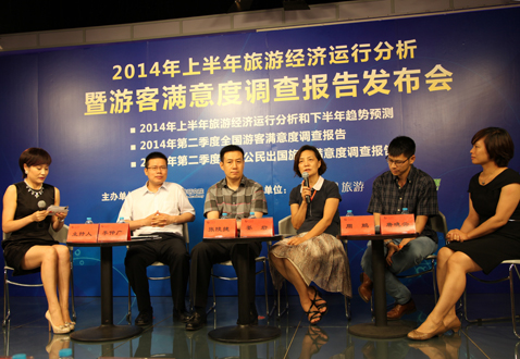 2014年7月9日由中国旅游研究院主办,人民网旅游频道、旅游卫视协办的2014年上半年旅游经济运行分析暨游客满意度调查报告发布会在人民网演播室举行。中国旅游研究院院长戴斌教授、北京市旅游委员会政策法规处调研员姜岩、中国国际旅行社总社有限公司总裁助理张陵捷、百度搜索引擎营销部高级营销总监周鹏、中国旅游研究院产业所所长李仲广副研究员、国家旅游经济实验室负责人唐晓云副研究员等参加了发布会。来自人民日报、新华社、中央电视台、中国国际广播电台、中国日报、经济日报、中国旅游报、中国网、央视网、中国旅游网、搜狐网、凤凰网、蓝海电视、旅行社杂志等媒体机构的代表也参加了发布会。
