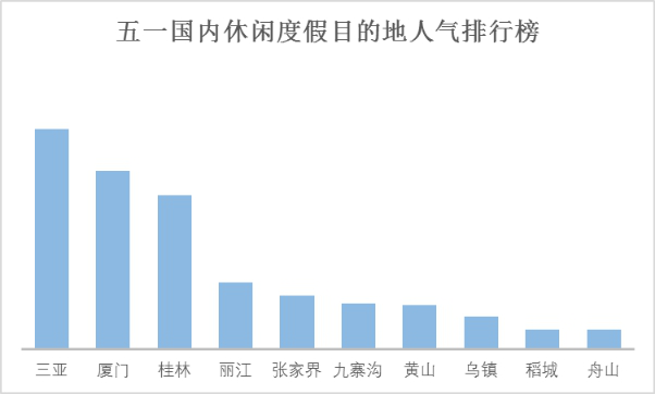 假日假期,携程数据显示, 最受欢迎、游客选择最多的国内前十大旅游城市是:北京、上海、重庆、杭州、昆明、成都、西安、广州、南京、拉萨;游客选择最多的国内前十大休闲度假目的地依次是:三亚、厦门、桂林、丽江、张家界、九寨沟、黄山、乌镇、稻城、舟山; 人气最高的出境游目的地国家Top15分别为:泰国、日本、新加坡、越南、美国、印度尼西亚、马来西亚、柬埔寨、韩国、菲律宾、澳大利亚、意大利、西班牙、法国、土耳其,国内外热门目的地和景区等承载经受考验,旅游市场平稳有序运行。各级文化和旅游主管部门坚守岗位,发布假日旅游指南,对旅游秩序实地督导检查,实施大数据监控、分析预警、联动应急处置,文化市场举报热线12318、旅游服务热线12301全天在线,文化和旅游市场未发生全国性突发事件和重大负面舆情。中国旅游研究院长期监测的假期旅游服务质量动态数据显示,五一期间旅游部分景区为游客提供温情服务,旅游目的地和核心业态服务品质总体明显提升。
