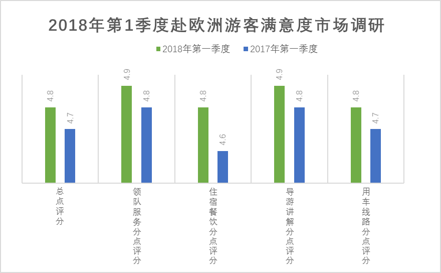 一季度,中国赴欧洲游满意度同比有所提升。旅游企业为提升客户满意度做了很多积极的努力,携程发布了“跟团游体验保障”、自由行微领队、全球旅行SOS;华远国旅推出“导游服务指南”、“行程助手”等导游管理、领队关怀、技术支持。从携程平台上数千条欧洲游产品的客户点评看,赴欧旅游总体点评分为4.8分(满分5分),比去年同期增长0.1分,领队服务、住宿餐饮、导游讲解及用车线路各项点评都呈现上升趋势。