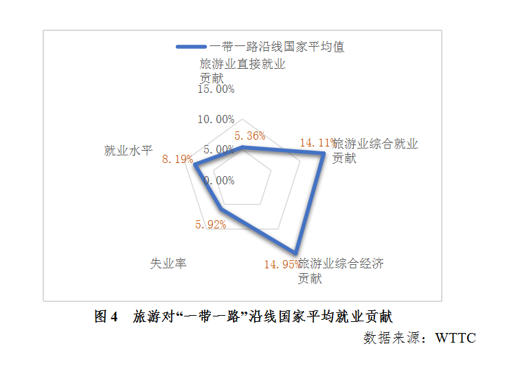 旅游平均为“一带一路”沿线国家带来5.36%直接就业贡献,以及14.11%的旅游综合就业贡献,对降低失业率、减少贫困作用明显。