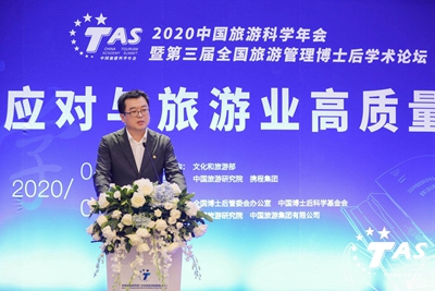 雒树刚部长做了开幕讲话。他指出,在新冠肺炎疫情防控形势持续向好、经济社会秩序逐步恢复的背景下,我们以视频会议形式举办2020年中国旅游科学年会,共同研究疫情应对和旅游业高质量发展,很务实也很必要。疫情发生后,文化和旅游部深入贯彻习近平总书记关于疫情防控重要指示精神,在疫情爆发后第一时间调整工作重心,有效防止了疫情经由旅游活动传播扩散,有力服务了疫情防控大局。针对旅游行业遭遇的困难,文化和旅游部积极协调相关部门,推出一系列针对性政策举措,帮助旅游业渡过难关。随着疫情防控形势好转,文化和旅游部深入学习贯彻习近平总书记关于统筹推进疫情防控和复工复产重要指示精神,帮助旅游业恢复发展。在此过程中,中国旅游协会等行业协会和广大旅游企业、中国旅游研究院等高校、科研机构等积极投入疫情抗击和行业振兴工作中。当前,在党中央坚强领导下,全国人民团结一致、顽强拼搏,在常态化疫情防控中经济社会运行逐步趋于正常,生产生活秩序加快恢复。但是,国际疫情仍呈快速扩散蔓延态势,输入性风险仍然较大,给我国疫情防控和经济发展带来新的挑战。我们要有信心、有定力,有化危为机的勇气,以更大的政策力度、更实的扶持举措来对冲疫情影响,推动旅游业高质量发展。当前,旅游科学研究要围绕“一个主题”“五个兼顾”来开展。“一个主题”就是紧紧围绕旅游业高质量发展这个主题。“五个兼顾”包括兼顾当前和长远、兼顾文化和旅游、兼顾理论和应用、兼顾国内和国际、兼顾人文和科技。今后,文化和旅游行政部门将一如既往地支持旅游研究、支持中国旅游科学年会,通过项目资助、课题委托、平台搭建等多种渠道对大家的研究给予资助,也希望专家学者继续研究文化和旅游工作,继续为旅游业应对疫情、恢复发展建言献策,为行业提供更多智力支持!